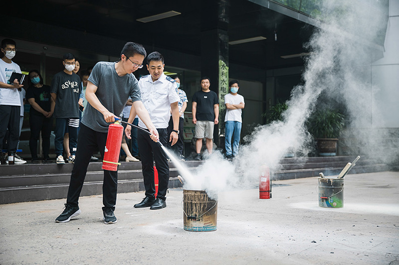 培訓(xùn)結(jié)束后,參加培訓(xùn)的職工在于教員指導(dǎo)下進(jìn)行了滅火演練。